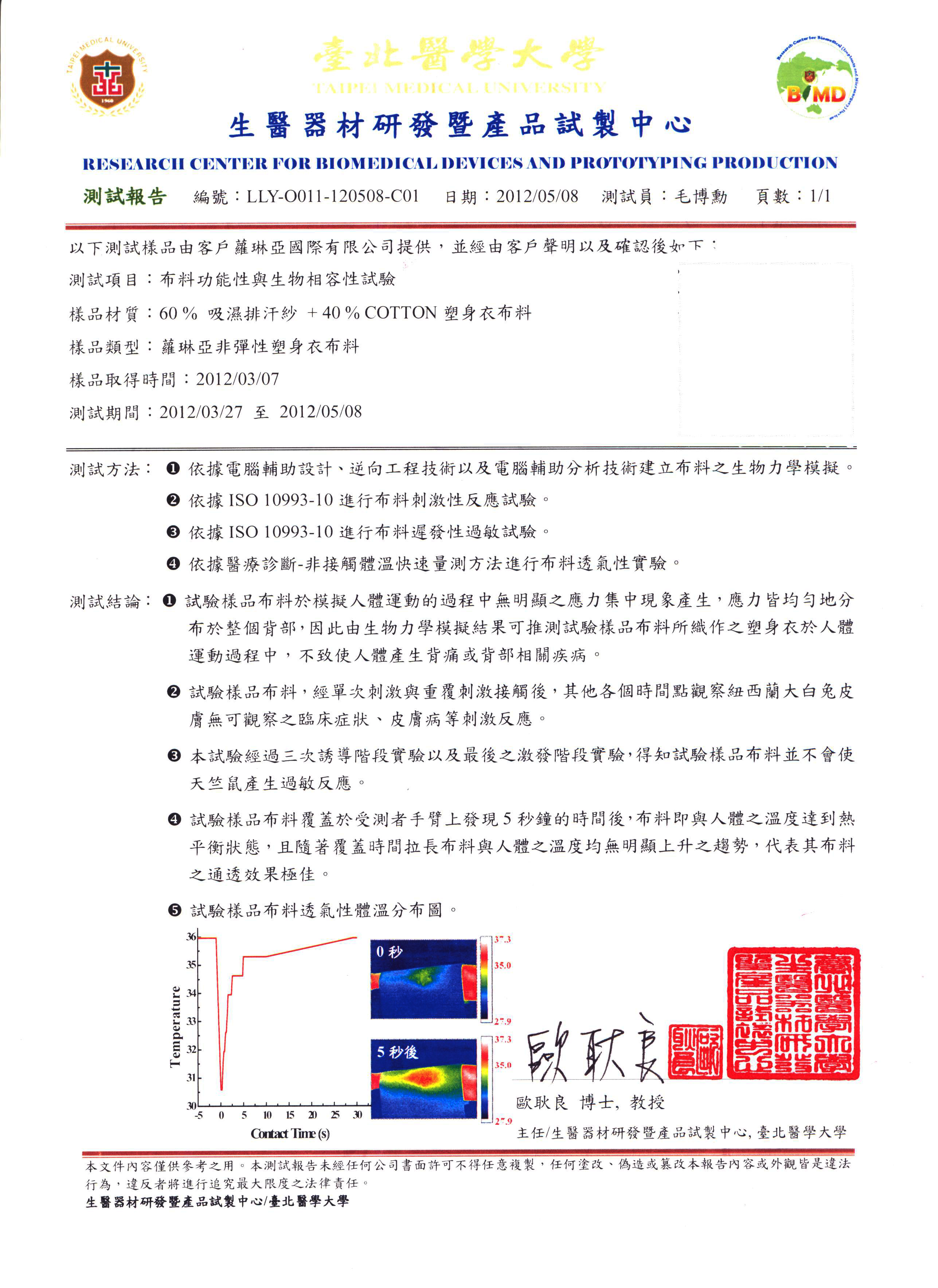 布料專業認證-臺北醫學大學檢測報告